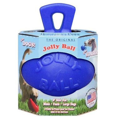 Jolly Ball är självuppblåsande, så den håller sig alltid i form. Den är gjord av starkt, men mjukt material, och det är riktigt bra för hästarna som greppar hårt eller gillar att bita saker :-)